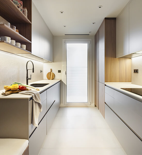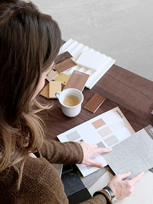 Se piensan todos los materiales que han de vestir los pavimentos, techos, paredes y concretamos baños y cocinas. Se crea la vivienda basándonos en las premisas de sus propietarios y se ajusta al estilo de vida y necesidades del cliente.